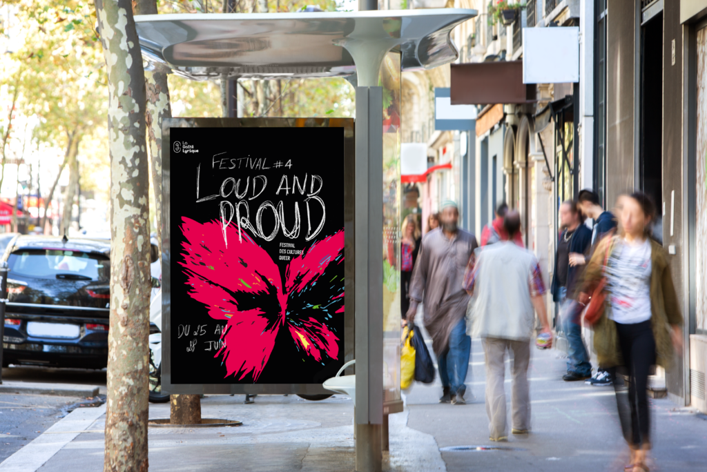Pour l’affiche Loud and Proud, j’ai choisi le papillon comme symbole, incarnant la métamorphose et la liberté, des principes intimement liés aux valeurs de la communauté LGBTQ+. Cette créature illustre la capacité à se réinventer et à s’épanouir malgré les défis, reflétant le parcours individuel et collectif vers l’acceptation et l’égalité. Pour renforcer ce message d’émancipation, je me suis orienté vers l’utilisation de peinture, un médium artistique synonyme de liberté d’expression et de création. À travers cette fusion entre le symbole du papillon et l’art de la peinture, l’affiche Loud and Proud célèbre la diversité, la créativité et la force de la communauté LGBTQ+.